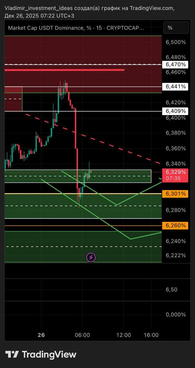 #USDT.D оранжевый уровень достигнут) жду отскок от сюда или чуть ниже от 6.260% что отправит биток снова вниз