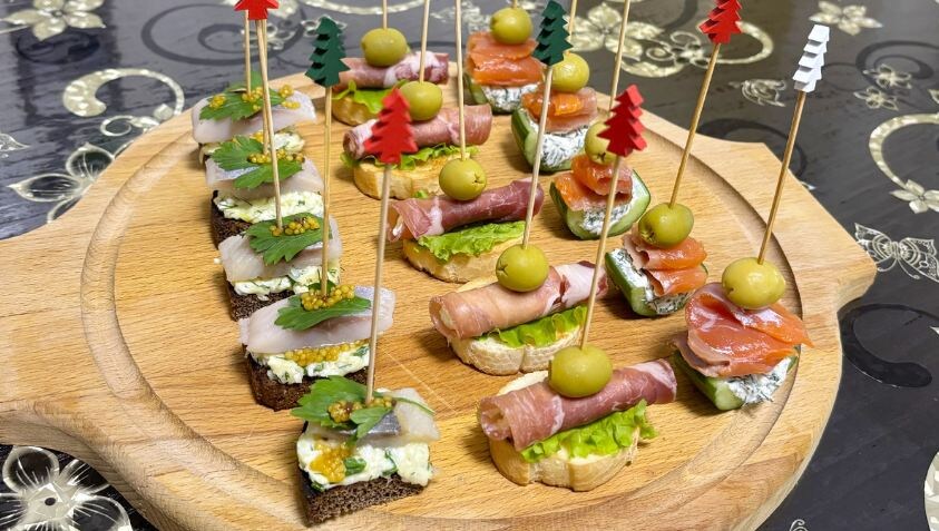 Сегодня поделюсь с вами своими рецептами канапе, которые всегда выручают, когда нужно быстро и красиво накрыть на стол. Никакой там кулинарии "высокой", все просто, понятно и делается на раз-два. Гости точно оценят! Канапе 1: Багет с окороком – классика с изюминкой