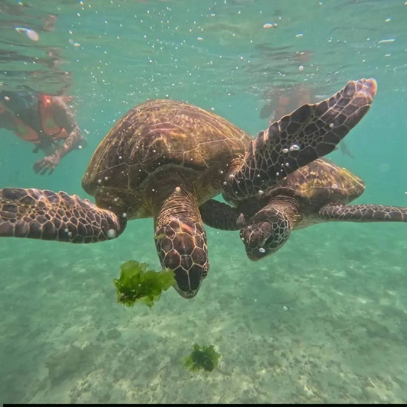 🎆Мирисса одно из многих мест на юге Шри-Ланки, где морских черепах можно увидеть прямо с берега. Без лодок, без дайвинга, без экскурсий. Черепахи выходят кормиться к каменистым участкам и водорослям, чаще всего утром. Они спокойно плывут вдоль берега, не обращая внимания на людей, поэтому наблюдать за ними можно долго. 🎆Лучший сезон для снорклинга здесь декабрь – февраль: океан спокойнее, вода чище, видимость лучше. На центральном пляже Мириссы обычно волны, а вот в небольших бухтах и у скал вода значительно тише. 🎆Помимо черепах, у берега встречаются тропические рыбы, морские ежи и небольшие кораллы. Шри Ланка с любовью