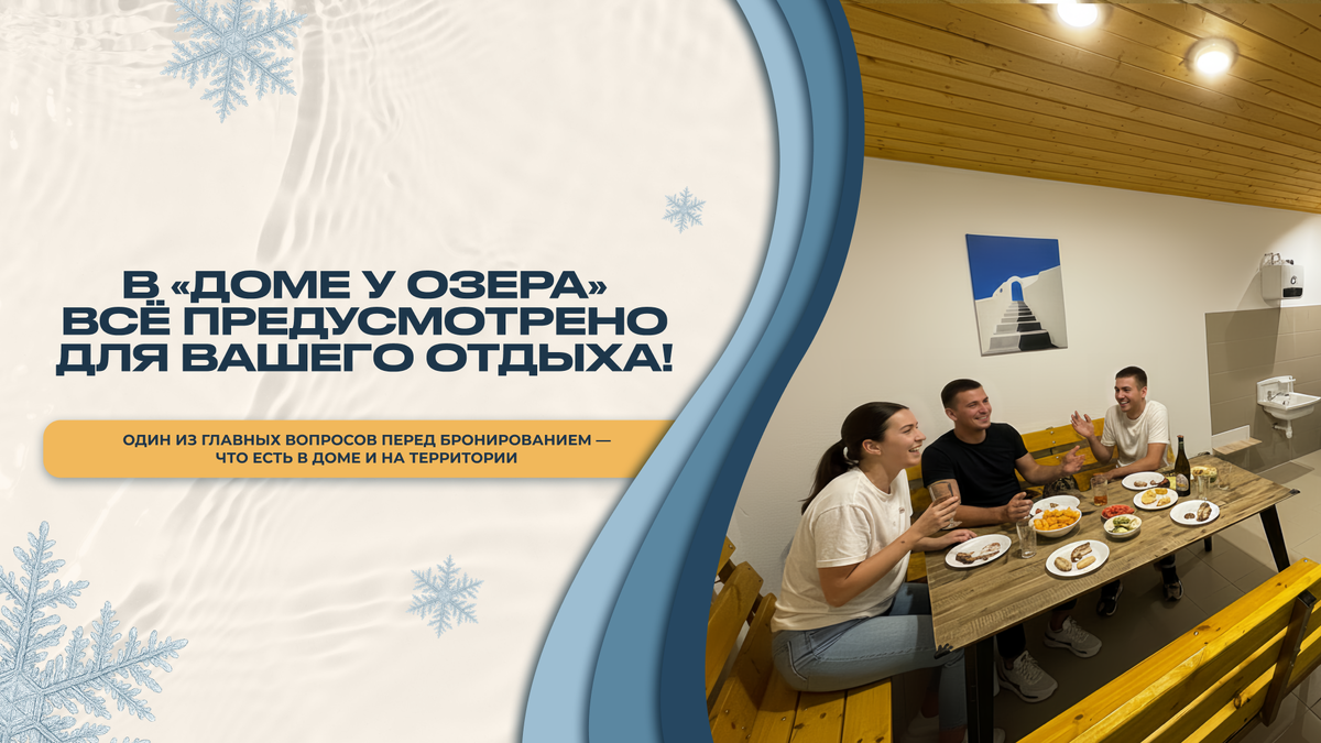 Как организовать праздник на 30 человек и не сойти с ума: чек-лист аренды дома для новогодних праздников в «Доме у Озера»