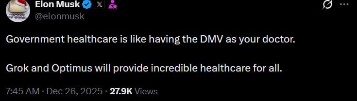 'Grok and Optimus will provide INCREDIBLE HEALTHCARE for all' — Elon Musk