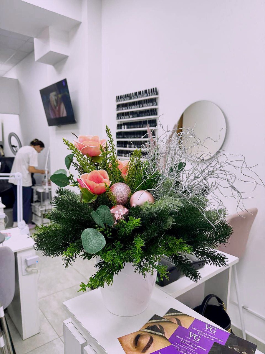 ! 🌿 Как же мы любим наших постоянных клиентов! Оформили вход для салона красоты VG на Королева 27/1, и это был настоящий вызов! Клиентка хотела украсить вход, но поставить что-то на пол было невозможно. Мы нашли решение: использовали нашу новую модульную конструкцию, разместив ее прямо на стекле. Результат? Бюджетно, красиво, стильно и, что самое главное, заказчица в полном восторге😍 А чтобы завершить образ, создали очаровательные композиции внутри салона, идеально вписавшиеся в их атмосферу. Получилась настоящая новогодняя фантазия, и мы безумно рады, что смогли воплотить мечты в реальность🔥