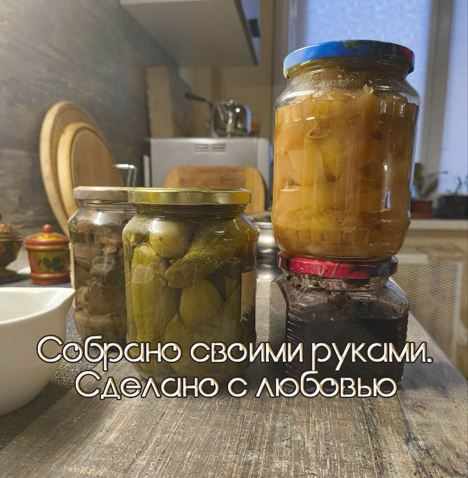На днях сын случайно задел дверь тумбы письменного стола, а оттуда рыбкой выскользнула банка. Стал засовывать назад и присвистнул - темное нутро тумбы было плотно заставлено банками с летними заготовками: грибы, варенье, нежинский салат, огурчики и прочее-прочее-прочее. В письменном столе, для бумажек и квитанций мне хватает верхнего ящика, внизу у меня филиал Хомячиных закромов. Сын с невесткой уперто не берут банки в массовом порядке. Стесняются видишь ли. А банка соскользнула потому что там грибы и я приготовила её на съедение. Вот скажите откуда, из каких глубин генетической памяти выпало мне увлечение делать закрутки. Откуда взялась эта хомячиная страсть накопительства на зиму? Ну явно не из детства: я выросла в СССР и жила на севере. У нас в Ухте не водились личные огороды. За границей города сразу начиналась тайга с грибами - вот их и собирали. Питались мы тем что продавали в магазинах и овощи тоже ели покупные. Огурцы - помидоры зимой водились только в виде консервов и и