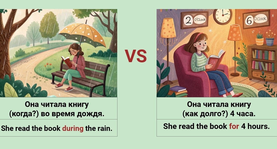Что ж, миссия выполнена) For для отрезков, during для событий. Запомните этот принцип, и ваша речь станет гораздо точнее. Остальное — дело мышечной памяти, которая нарабатывается в разговорах и текстах. Вперёд!