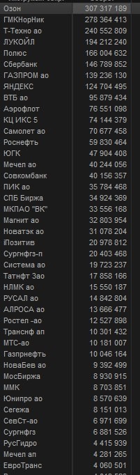 Зеркальная ситуация с вчерашней сессией. Движения общего за 2 час не было, отдельные бумаги на малом объеме выносят вверх. Объем еще меньше чем вчера. ___________ Работаю по вчерашней схеме, пропускаю первичное движение, В приоритете ХУЖЕ рынка + инструменты с макс выносом вверх. __________ Новостей нет