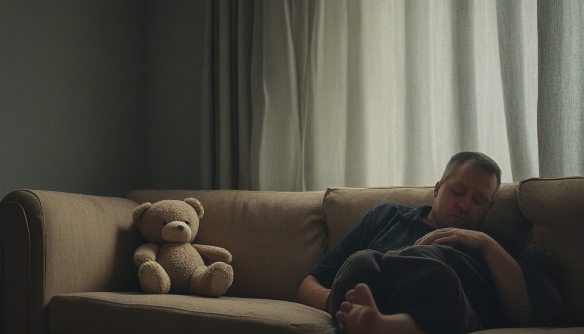 Сонечка лежала на диване, тихонько всхлипывая. Её маленькое тельце содрогалось от беззвучных рыданий, а пухленькие пальчики теребили край плюшевого медвежонка. В комнате царил полумрак, лишь тонкие полоски света проникали сквозь неплотно задернутые шторы.