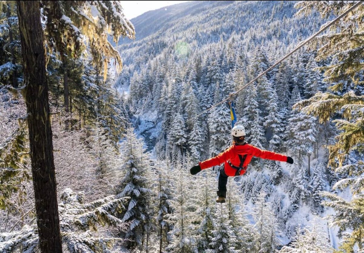 Сегодня в рубрике #неунас снова Канада и полёт на зиплайне над хвойным лесом между горами Уистлер и Блэккомб на высоте птичьего полёта