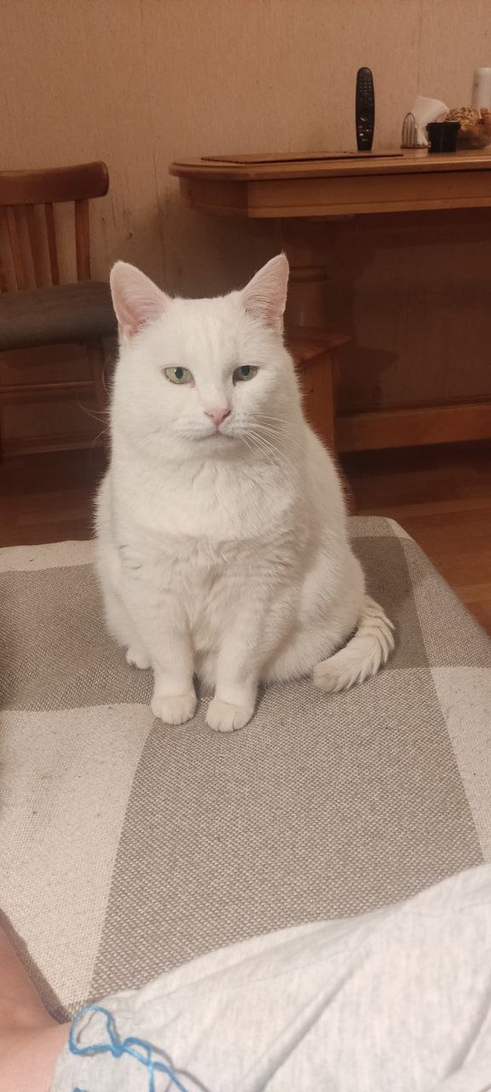 Роскошная,белоснежная кошечка уезжала от нас с весьма округлыми формами, а за год в семье кажется вообще превратились в белый меховой шар. Ну не возможно смотреть на нее без восхищения! Не зря дома ее называют Мадонной.