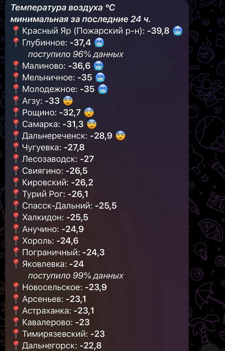 🥶 Минувшей ночью в отдельных районах края температура рухнула до -40 градусов - для Приморья это аномально холодно. Жителей просят одеваться максимально тепло и беречь себя. VL Pro NEWS - подпишись, это интересно