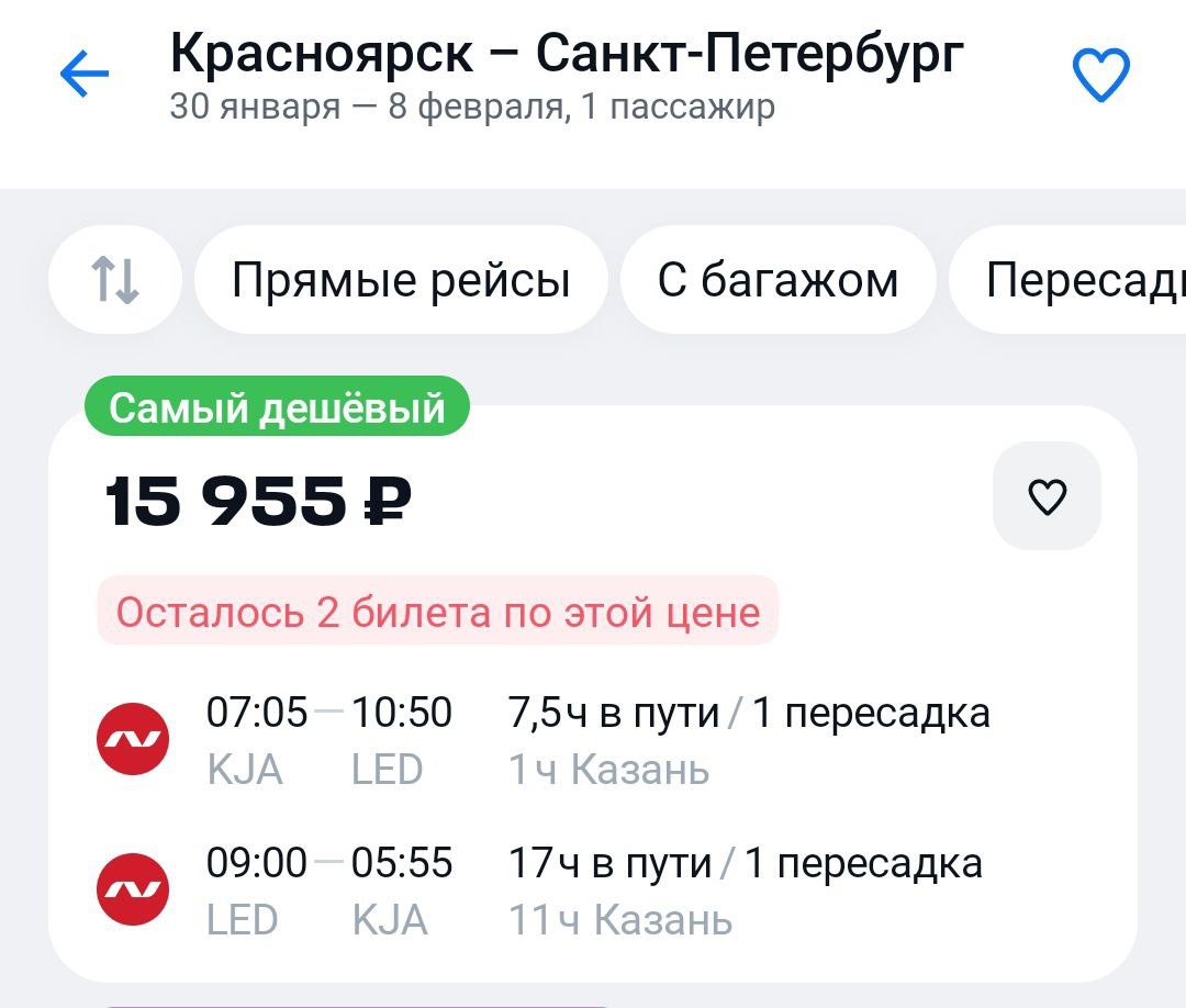 Вообще мы не любим постить билеты с пересадками, но посмотрите какой замечательный Петербург через Казань появился у Нордвинда на