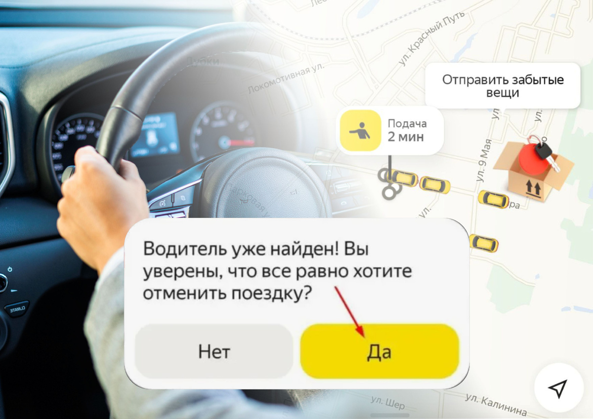 - Имейте запасной вариант — если водитель просит отменить, не вступайте в спор, а сразу вызывайте другую машину.