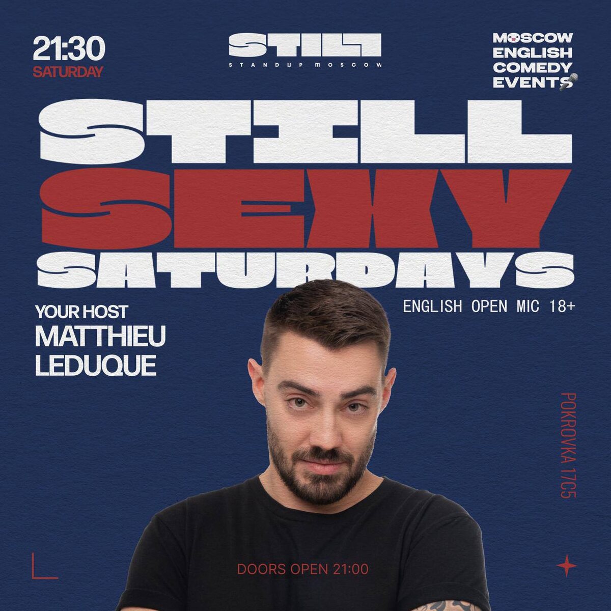 ) ▪️Doors at 21:00 ▪️Show from 21:30-23:00 Our signature sexy open mic 🎤 that's been going strong for over a decade is now at a stand up club called "Still"! Come have some fun, make some new friends, and enjoy a laugh or two! 𐦂𖨆𐀪𖠋 🪣Entrance: Amount of your choice upon entry (cash or transfer) 💸 One drink minimum required 🍸 🔗 Register for free 📍Still StandUp Moscow 🗺 Pokrovka 17c5, through the arch with the pink lights 🏙 Blue building directly inside the courtyard Info for comedians to sign up: Step 1️⃣ Make a story or a post using the poster above, tagging Moscow.english.comedy.events on Instagram or mentioning us on a platform of your choice Step 2️⃣ Share a screenshot of the post in the comments BELOW this post