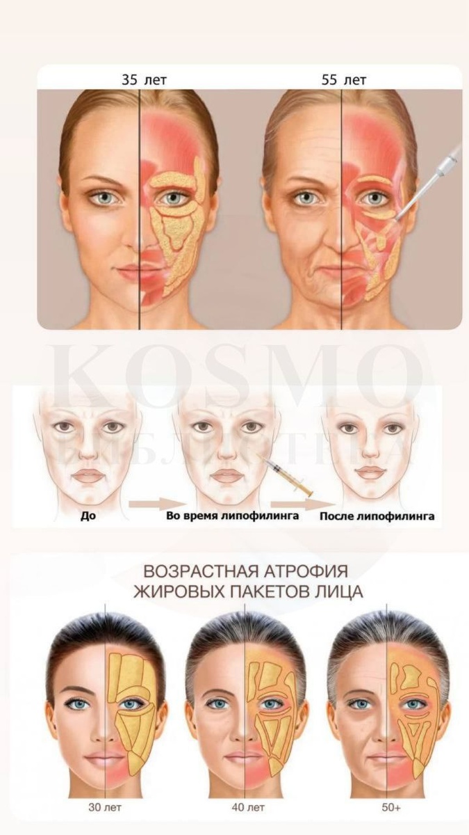 Уменьшению объема ПЖК: Жировой слой истончается, особенно в определенных зонах (щеки, подбородок, скулы). 📉
