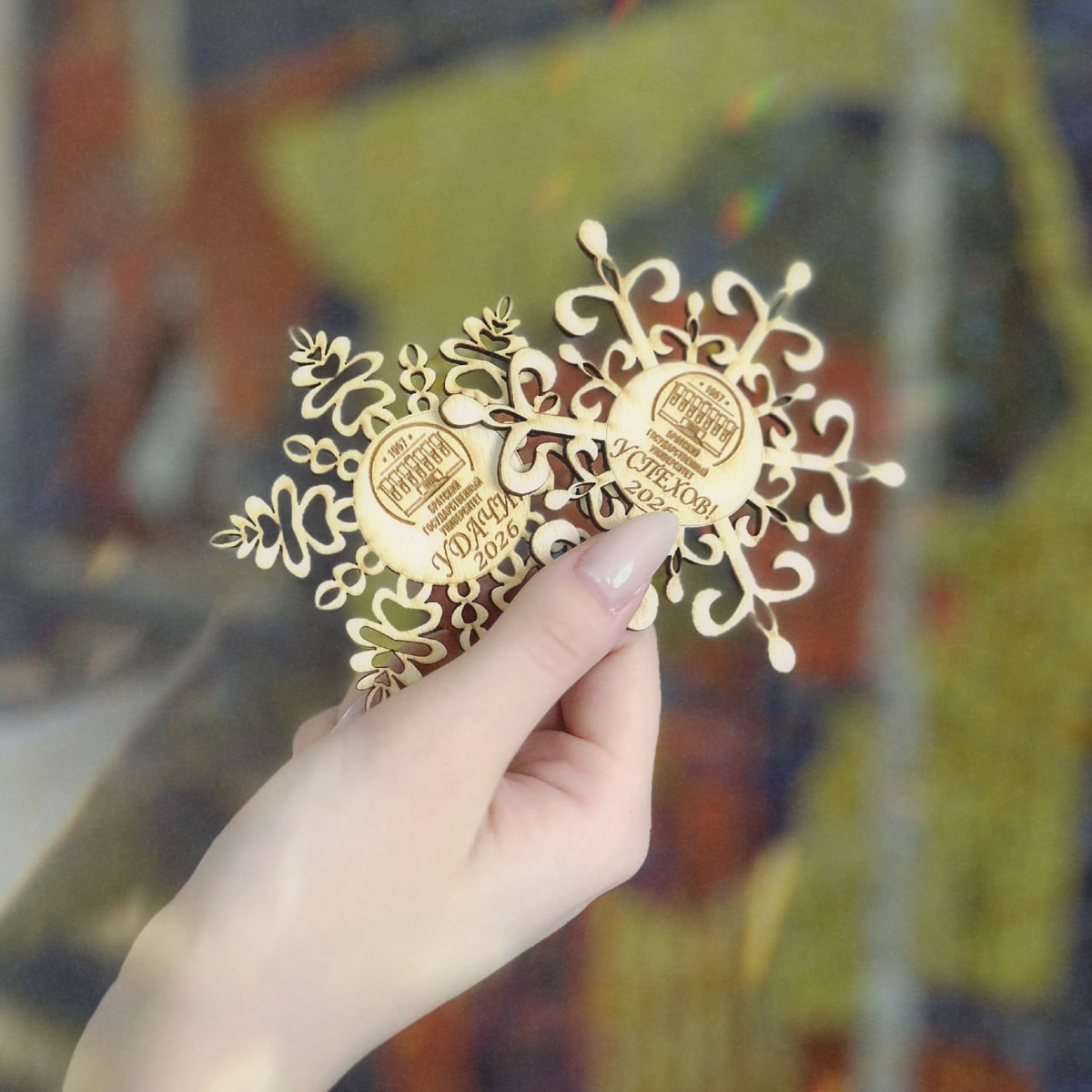 В холле 2 корпуса (3 этаж) каждого ждёт особенная деревянная ёлка с игрушками ручной работы❄️