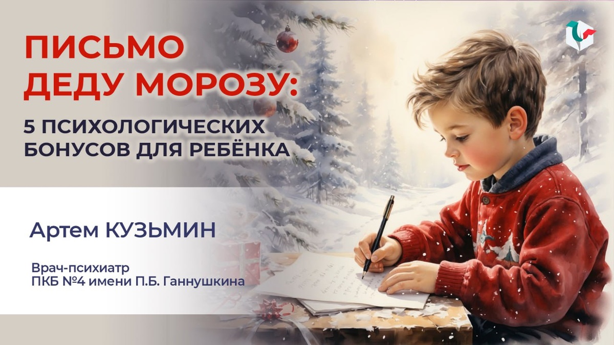 В эпоху цифровых технологий мы стали забывать о простых, но очень важных и глубоких ритуалах детства. Письмо Деду Морозу — один из них. За этой новогодней традицией скрывается мощный психологический механизм, который помогает ребёнку развиваться и прокачать важные жизненные навыки. 🎅 Врач-психиатр, психотерапевт ПКБ №4 имени П.Б. Ганнушкина Артем Кузьмин рассказал, что на самом деле происходит, пока ребенок, затаив дыхание, пишет заветное послание на Северный полюс. ❄️1. Тренировка воображения — без тренажёров и репетиторов Письмо Деду Морозу – это идеальный старт для будущих гениев и мечтателей, способных найти выход из любой "сказочной" ситуации. Представьте: маленький писатель берет карандаш, его мозг запускает мощный механизм фантазии. И вот он уже не за столом, а мчится на оленьей упряжке к Северному полюсу! Он видит хрустальный дворец Дедушки, слышит смех его помощников, придумывает детали «волшебной» доставки подарка… В будущем такая гибкость мышления поможет вашему выросшему р