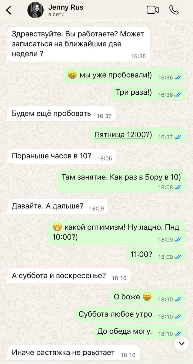 Роскошная, как и все дамы там. Отщанимаоась у меня йогой и сказала, что хочет меня дома. Завести новую прислугу, так сказать 😁 Мы договорились и она пропала. Прошло несколько месяцев и вдруг она снова написала. Сказала, что опять в России и хочет две недели каждый день. Мы договорились и она заболела… Прошло несколько месяцев… она снова оказалась в России. Опять по старой схеме. ***** Три дня назад её частный борт приземлился в Шереметьево. Наше расписание - две недели каждый день. Сегодня первый день. До последнего ждала, что что-то произойдет. И вот я еду к ней. И очень не хочу 🙄 даже чёс по 10 тысяч за занятие в течение ближайших двух недель не возбуждают. Эх…