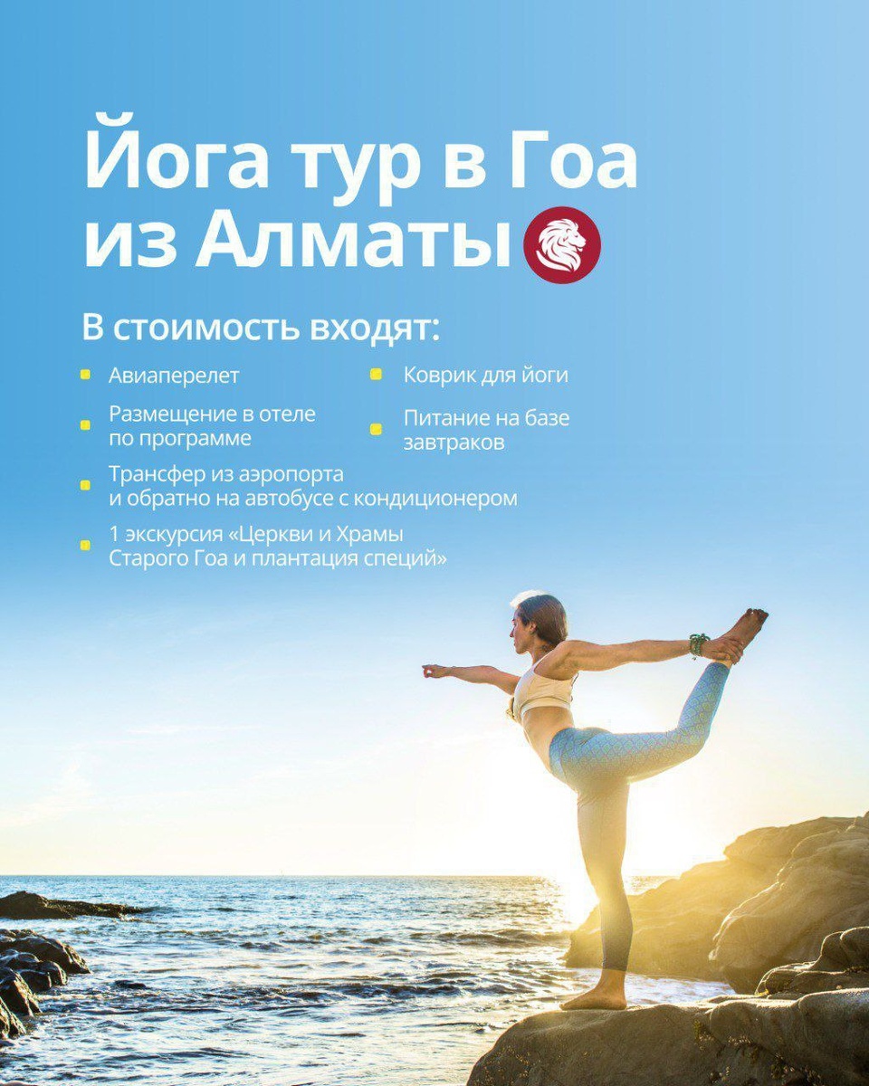 : 🇮🇳 Йога тур в Гоа из Алматы а/к FlyArystan BLOCK 14.01 на 7 ночей от 441 000₸ В стоимость входят: • Размещение в отеле по программе; • Питание на базе завтраков; • Трансфер из аэропорта и обратно на автобусе с кондиционером; • 1 экскурсия «Церкви и Храмы Старого Гоа и плантация специй»; • Коврик для йоги; • 1,5 часовое занятие йогой с англоговорящим инструктором ✅ Для бронирования +77778742777