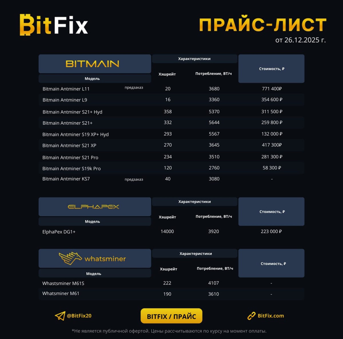 BitFix комплексные решения для майнинга под ключ! ➡️Качественная консультация наших менеджеров по выбору оборудования под ваши желания и возможности. ➡️Стабильная поставка оптом и в розницу оборудования уже свыше 7 лет подтверждает наш профессионализм. ➡️Имеем личный хостинг без посредников на газо-поршневой установке со всеми плюшками современного майнинг отеля. ➡️Личный сервисный центр в двух городах России(на ремонт принимаем с любого города по ТК). ➡️ С BitFix давно сотрудничают крупные оптовые майнеры уже многие годы. ✅ Успейте инвестировать в майнинг с дешевой энергией! Наша команда обеспечивает полный цикл услуг: от строительства ЦОД и их технического оснащения до комплектации оборудованием. 📍Хотите посчитать экономику и понять, насколько ГПУ снизит ваши затраты? Свяжитесь с нашим менеджером по контактам ниже. 💬 @BitFix20