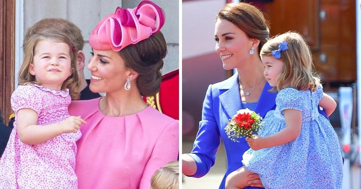 Еще одно празднование дня рождения королевы в 2016 году подарило красивый момент совпадения. Кейт была в белом платье и шляпе, а Шарлотта — в розовом. Контраст был мягким, не резким, и создавал ощущение аккуратно выстроенной композиции.
