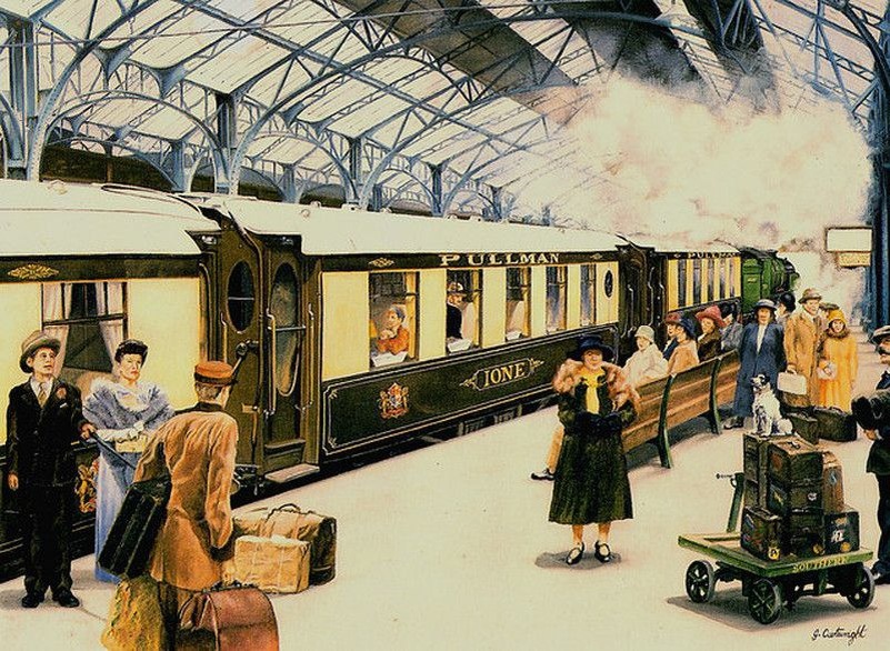 ? 🕰🎩 Доброе утро, путешественники во времени! Сегодня мы перенесемся в прошлое, чтобы узнать, как праздновали Новый год и Рождество пассажиры поездов в эпоху пара и первых электричек. Это было время особого шарма и уникальных традиций. Особенности праздничных путешествий в начале XX века: 🎩 Дресс-код и антураж: • Пассажиры первого и второго классов надевали вечерние наряды — дамы в платьях с корсетами, мужчины во фраках • Вагоны-рестораны украшали еловыми ветками, свечами и бумажными гирляндами • Живая музыка — струнные квартеты или пианист в салоне-люкс 🍾 Праздничное меню в царском поезде (пример 1913 года): • Икра зернистая с горячими блинами • Суп-пюре из дичи • Фаршированный поросёнок с хреном • Пломбир с горячей шоколадной заливкой • Шампанское «Абрау-Дюрсо» 🎁 Традиции и развлечения: • Обмен подарками между случайными попутчиками (часто дарили открытки, конфеты, миниатюрные алкогольные наборы) • Гадание на станциях — считалось, что если запомнить первое слово, услышанное