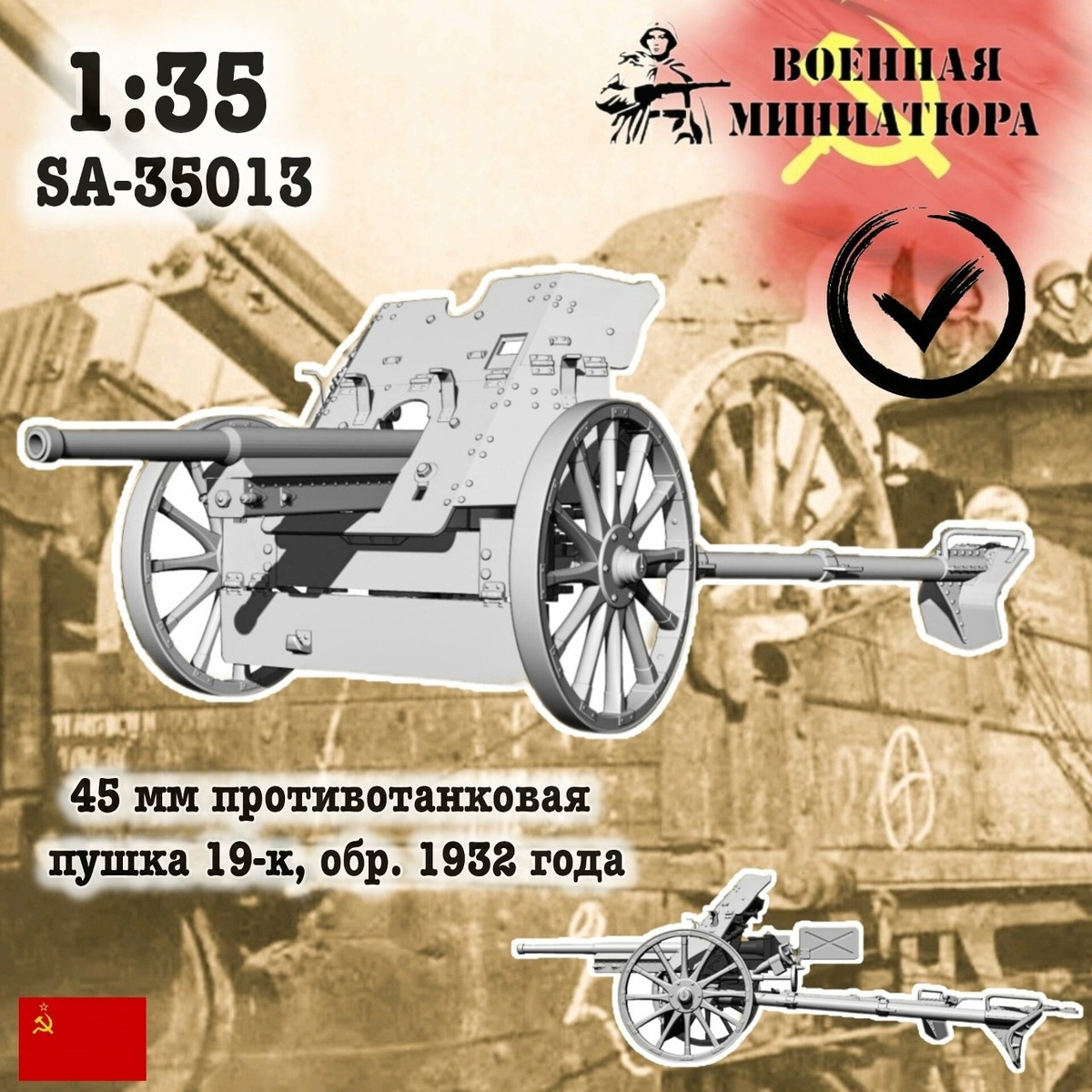 Ставропольская "Военная миниатюра" выпустила на 3D-принтере модели советской 45-мм пушки 19К обр. 1932 года в масштабах 1/35 и 1/24 (сборка показана модели 1/35).