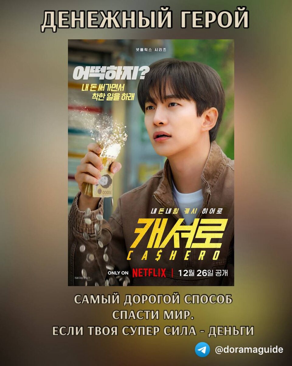 ! Денежный герой Встречайте самого материально зависимого супергероя всех времен! 🦸♂️💸 Что, если бы ваша сила росла вместе с банковским счетом? А потом стремительно падала после оплаты ипотеки? Сегодня на экранах — история не о том, как спасти вселенную, а о том, как спасти вселенную и НЕ ОБАНКРОТИТЬСЯ. Пока другие герои носят трико, наш герой нервно проверяет курс валют и ищет скидки в супермаркете. Потому что его суперсила — это ваш реальный кошелек. Хотите мощный удар? Пополните баланс. О чем дорама «Денежный герой» (Cashero): Госслужащий Кан Сан Ун (Ли Чун Хо) всю жизнь копил на дом. Вместо квартиры он внезапно получил в наследство сверхсилу, зависящую от остатка на счете. Теперь, чтобы стать сильнее, ему нужно РАЗБОГАТЕТЬ, а чтобы спасти мир — возможно, РАЗОРИТЬСЯ. Неловко? Ему предстоит собрать команду самых «эффективных» супергероев: · Его лучшая подруга Ким Мин Сук (Ким Хе Чжун), которая верит только цифрам и эффективности. Она считает Сан Уна пустой тратой бюджета,