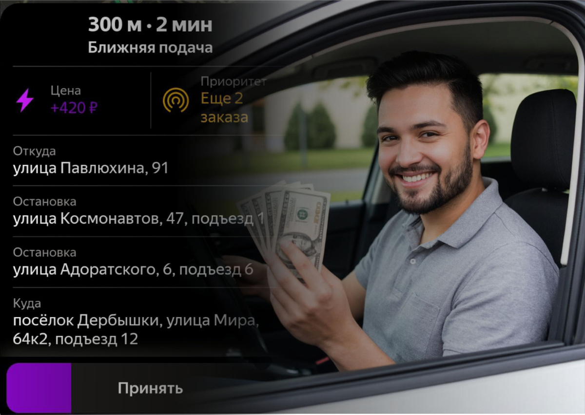 Подработчики, как правило, не требуют высокой ставки: для них это дополнительный доход, а не основной заработок. Это позволяет платформе держать цены на уровне, конкурентоспособном с общественным транспортом и личными авто. Если бы все водители были «официальными», стоимость поездки выросла бы на 15–25 %. - Гибкость в регионах с низкой плотностью заказов