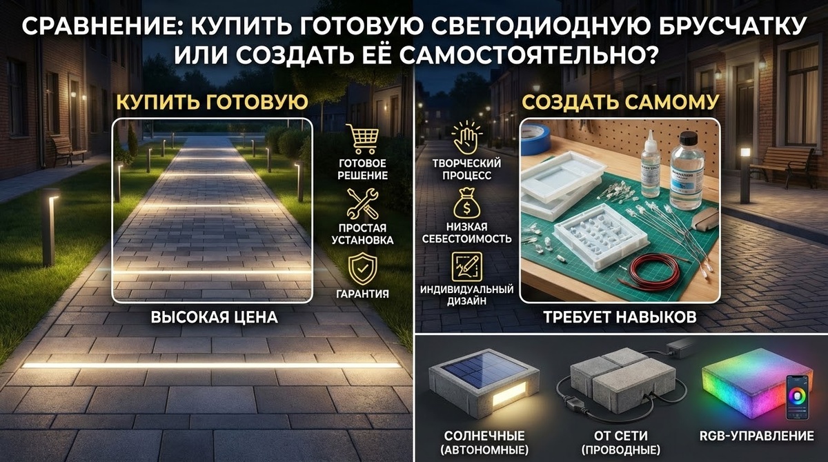 Сравнение: купить готовую светодиодную брусчатку или создать её самостоятельно