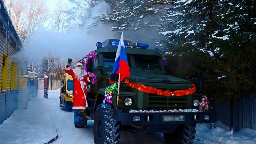 Росгвардейский Дед Мороз спецназначения на броневике поздравил детдомовцев в Дербышках