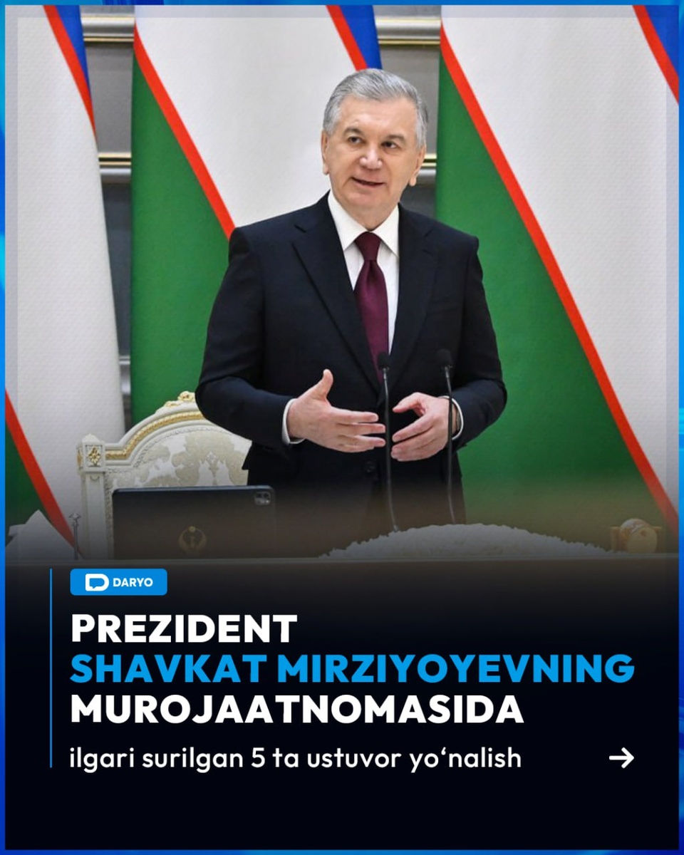 Prezident Shavkat Mirziyoyevning murojaatnomasida ilgari surilgan 5 ta ustuvor yo‘nalish