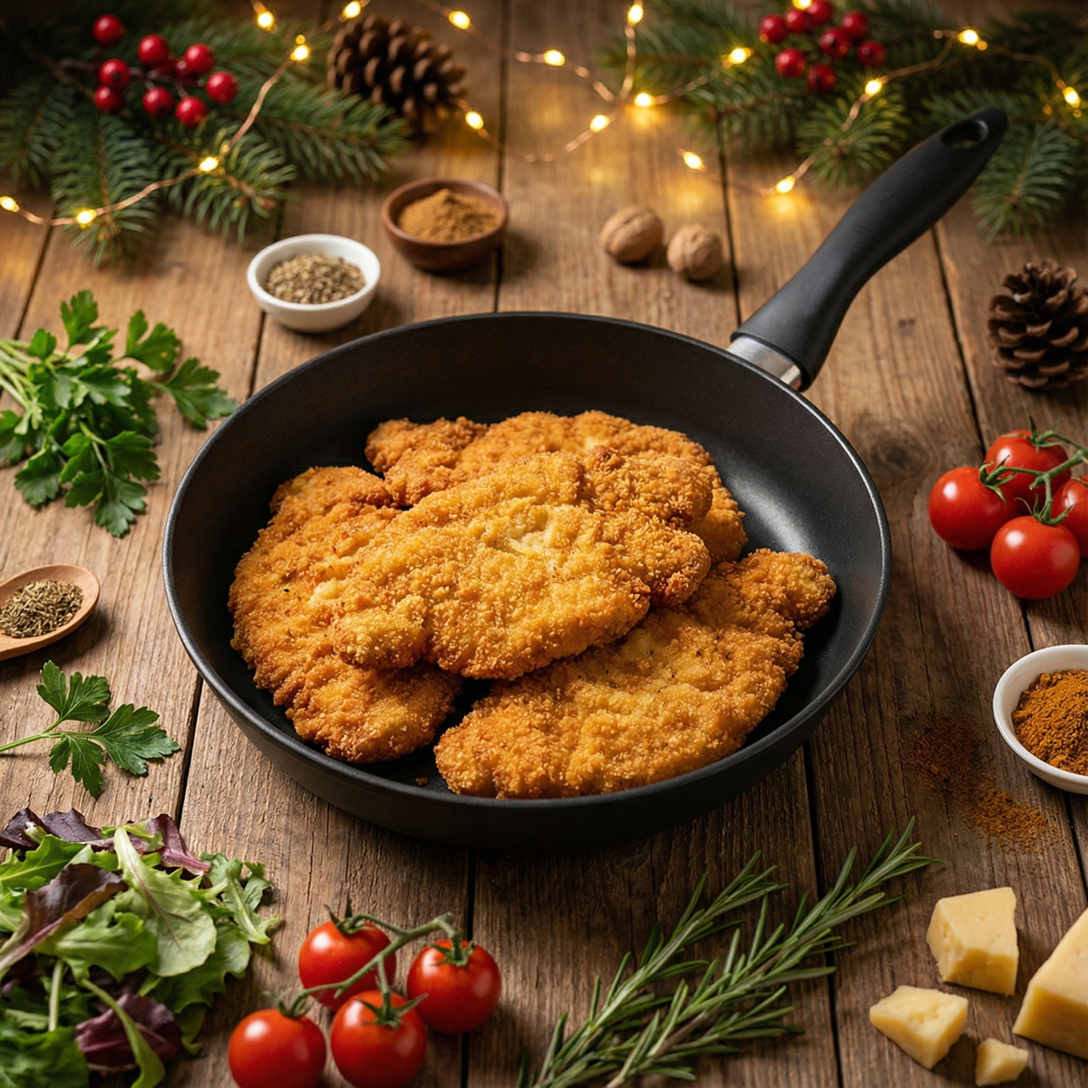 Хрустящая золотистая корочка, сочное куриное филе внутри и минимум усилий. Здесь вместо обычных сухарей — измельчённый сырный крекер, поэтому вкус получается особенно ярким и «сырным». Идеальный вариант, когда нужно быстро приготовить что‑то и на ужин, и на праздник 🎄 ✅ куриное филе — 1–2 шт. (в зависимости от размера) ✅ крекер со вкусом сыра — 200 г ✅ кукурузный крахмал — 40 г ✅ яйца куриные — 2 шт. ✅ соль, чёрный перец — по вкусу ✅ растительное масло — для жарки ▪️ Куриное филе разрезаем вдоль на пласты и слегка отбиваем через плёнку, чтобы шницели стали тоньше и готовились равномерно. Солим и перчим с двух сторон. ▪️ Крекер измельчаем в мелкую крошку (в блендере или в пакете скалкой). Пересыпаем в тарелку. В другую тарелку насыпаем кукурузный крахмал. В третьей тарелке взбиваем яйца. ▪️ Каждый кусочек филе сначала обваливаем в крахмале, затем окунаем в яйцо и панируем в крошке из крекера, слегка прижимая её ладонью. ▪️ В сковороде KALITVA разогреваем растительное масло на среднем о