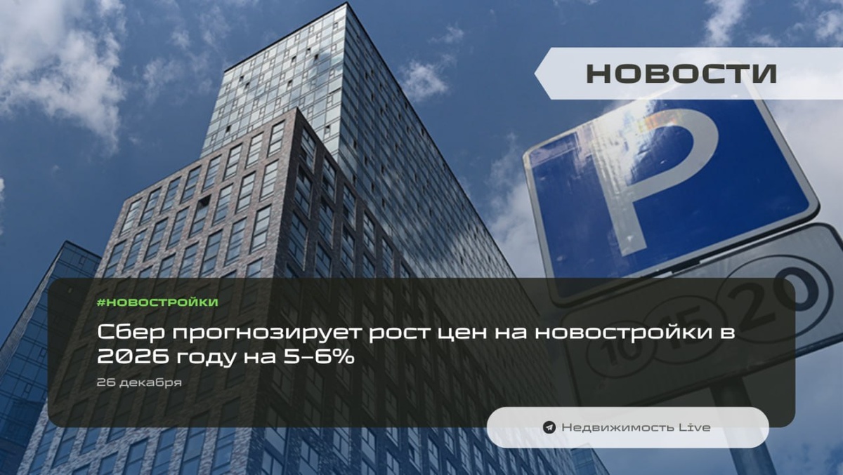 🏗 Сбер прогнозирует рост цен на новостройки в 2026 году на 5–6% — такой прогноз дал зампред правления банка Анатолий Попов