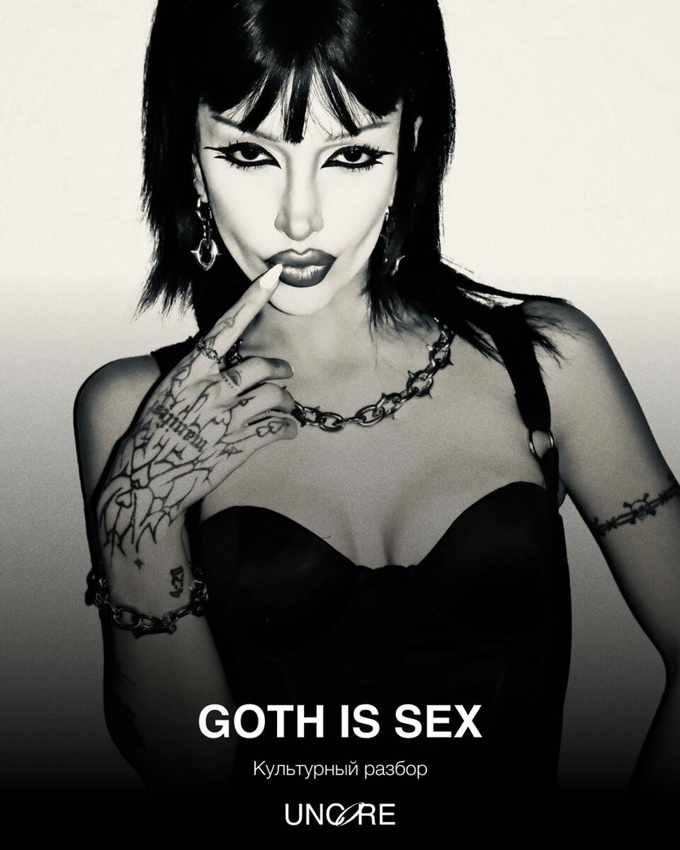 журнала Mancunion Виолета Робинс. Причина таких сообщений лишь в том, что она — готка. Мы все знаем, как они выглядят: черные волосы, темный макияж, массивная грубая обувь и татуировки, однако в какой момент эта субкультура воскресла и стала такой сексуализированной? Субкультура появилась в 70–80-х в Великобритании как одно из ответвлений постпанка, из той же среды, что отвергала консерватизм, правильность и навязанный оптимизм. В ее основе была меланхоличность и темная романтика вместо прямого бунта. Их визуальный язык собирался из хоррора, викторианских силуэтов, сетки, корсетов, заигрывания с темой смерти. Готика всегда была для аутсайдеров и способом самовыражения для тех, кто не вписывается. Из контекста становится очевидно, что ни о каком мейнстриме и сексе нет речи, так как мы пришли к этому? В 2020 году готика идеально совпала с логикой алгоритмов TikTok, которая продвигает не смыслы, а то, что удерживает внимание: яркий макияж, нарочитая театральность, инаковость от прочих в