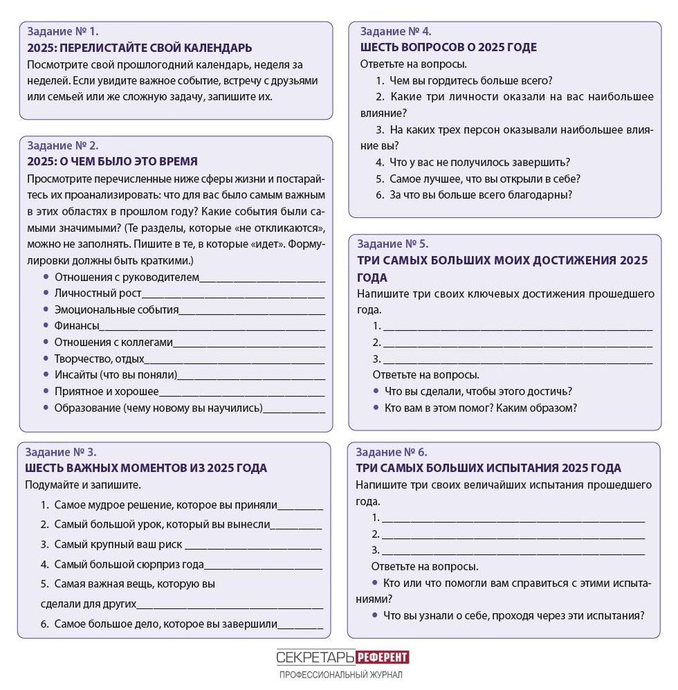 ⛄️Выполните шесть заданий, чтобы убедиться, как много вы сделали, преодолели и узнали в этом году. ⛄️Подведение итогов помогает понять, в каком направлении двигаться и развиваться в 2026 году и есть ли у вас силы на реализацию новых проектов.