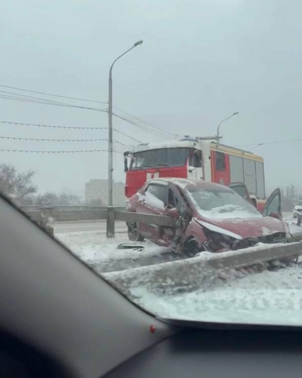 Машина повисла между двумя полотнами моста в сторону Заводского района.