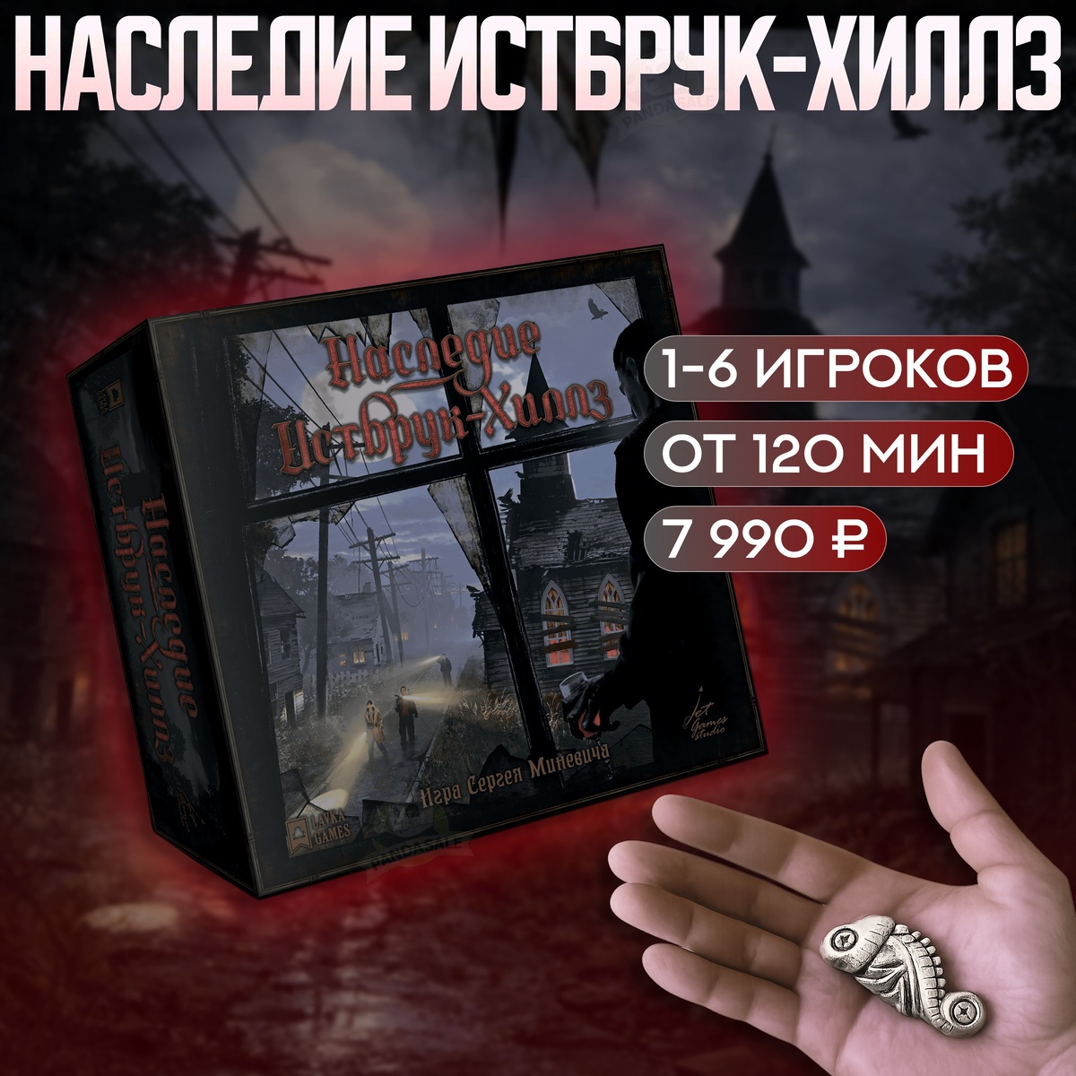 💥 Новинка в — PandaSale. Наследие Истбрук-Хиллз. Пять ночей. Одна тайна. Зло, которое не отпустит. ⭐️ Уже сейчас некоторые настольные блогеры называют Наследие Истбрук-Хиллз одной из главных игр года — за атмосферу, цельный сюжет и редкое ощущение настоящего сериала за игровым столом. 🐈⬛ Добро пожаловать в Истбрук-Хиллз — тихий городок, где под покровом ночи пробуждаются древние кошмары. Вас ждёт захватывающий детективный сериал из пяти связанных эпизодов, каждый из которых приближает к разгадке мрачной истории о вампирах, преследованиях и проклятом наследии. 😀 Почему эта игра — то, что вам нужно: · Атмосфера классического хоррора. Готическая эстетика, напряжённое повествование от первого лица, неожиданные повороты — вы буквально проживаете каждую сцену. · Детектив без подготовки. Открыли коробку — и сразу в игру. Правила объясняются по ходу расследования, ничто не отвлекает от погружения в историю. · Настоящая кооперация. От 1 до 6 игроков управляют группой персонажей вместе.