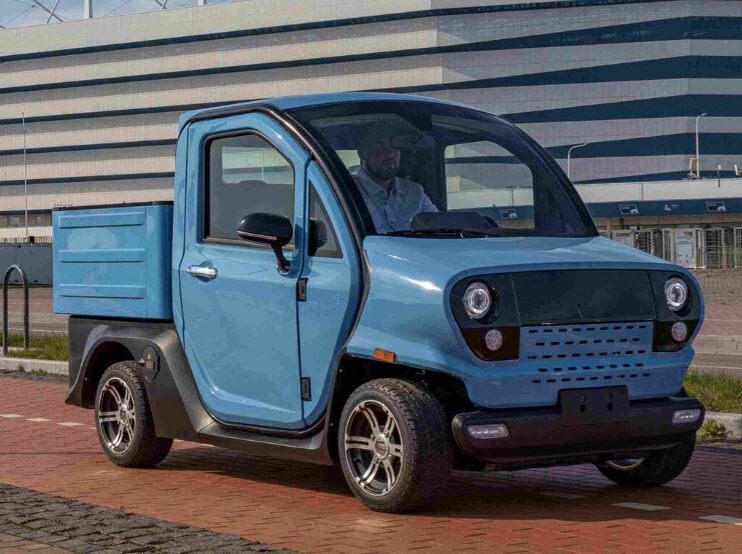 Представьте: компактный кузов пикапа. Габариты, позволяющие юрко лавировать в городском потоке и заезжать во дворы, куда обычному грузовику путь заказан. Грузовая платформа сзади. Электродвигатель мощностью 6 кВт (это примерно 8 л.с.) и свинцово-кислотные аккумуляторы. Скорость — до 60 км в час (с полезной нагрузкой). Запас хода — с учетом допустимой нагрузки — 100 км. (до 140 км в режиме ЭКО и с минимальной нагрузкой). Место для двух человек.
