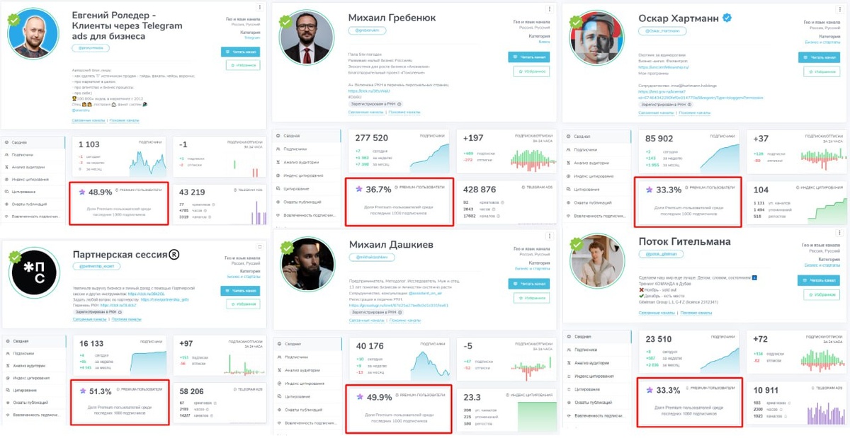 ~40% аудитории в каналах для предпринимателей премиум-пользователи