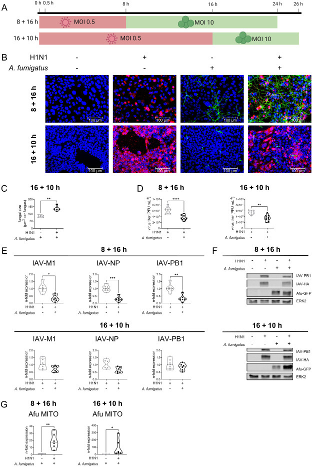 Мы предлагаем новую модель коинфекции для изучения сложного взаимодействия патоген-хозяин и патоген-патоген между вирусом гриппа А (IAV), грибом A. fumigatus и эпителиальными клетками легких. Используя эту модель, мы смогли показать, что рост гриба A. fumigatus увеличивается во время коинфекции, вероятно, из-за взаимодействия со свежевысвобождающимися вирусными частицами, а также с высвобождаемыми цитокинами. С другой стороны, репликация вируса, а также вызванный IAV ответ клеток хозяина снижались в присутствии A. fumigatus. Ингибирование связанного с вирусом высвобождения цитокинов и хемокинов может быть полезно для гриба, поскольку меньше иммунных клеток привлекается или активируется. Таким образом, A. fumigatus меньше сталкивается с возможными агрессорами из иммунной системы и может легче распространяться по всему легкому. На основании этих данных можно предположить, что тяжесть суперинфекции вирусом гриппа А и A. fumigatus in vivo в основном определяется вторичной грибковой инфекц