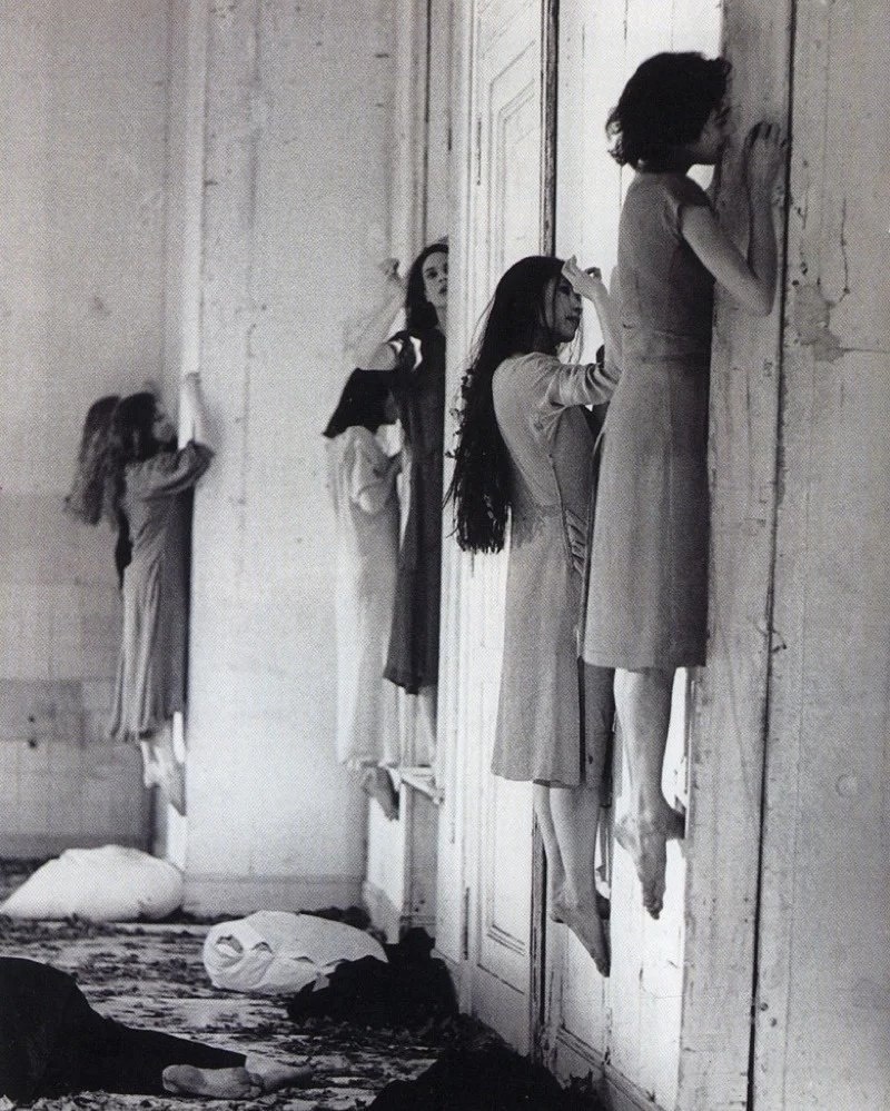 Чего уже только не понаписали про этот снимок в соцсетях. «Жуткое фото 1957 года из детской больницы». «Закрытый дом для сумасшедших в 1970-х годах». «Жестокие кадры прошлого!» На самом деле это балет. Точнее даже танцтеатр-постановка. В 1977 году немецкий хореограф Пина Бауш представила свое видение «Синей Бороды» по опере Белы Бартока. Это и запечатлено на фото из архива журнала “COEVAL”. Танцовщицы будто приросли к стене. Но, если присмотреться, можно заметить, что одно ногой они стоят в пустотах. За счет этого и держатся. Декорации для танцтеатр-постановки делал соавтор Пины Бауш Рольф Борцик. Именно он придумал заменить замок герцога Синяя Борода на заброшенный дом с густым ковром из сухих листьев. А ведь какова сила искусства! И сумасшедший дом людям привиделся, и жутка детская больница.