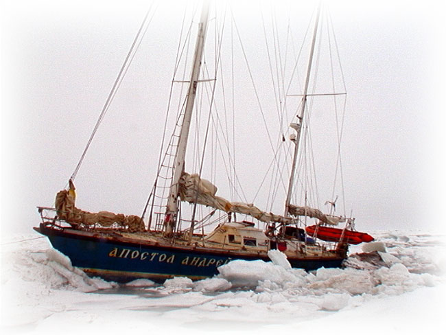 Два последних года здешняя ледовая обстановка была куда благоприятней. В своё время наш основной партнёр-конкурент, немец Арвед Фукс, без проблем прошёл на своём деревянном (!) гафельном кече «Дагмар Он» тот самый маршрут, по которому сейчас пробиваемся мы (только он шёл с востока на запад, то есть наоборот). В 1998-99 годах «Апостол» с треском ломился через Северный морской путь, где всё тот же Арвед и француз Эрик Броссье (яхта «Вагабон»*) сейчас идут из Мурманска почти по чистой воде и уже добрались до Тикси… Такое впечатление, будто стихия к ним благоволит, а нас всю дорогу проверяет на крепость – не отдадутся ли у нас гайки? Ну в самом деле, где эти южные ветра? Сплошной норд-вест, который набивает лёд у нас на пути и тут же смыкает его за кормой «Апостола».