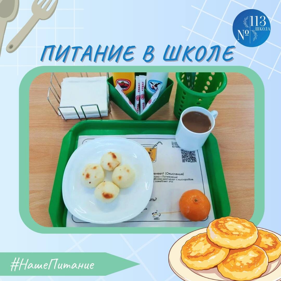 ! ❄️ В этот снежный день особенно приятно начать утро с тёплого, вкусного и полезного завтрака! Сегодня в меню : 🔹Сырники 🔹Варенье ягодное 🔹Молоко сгущеное 🔹Мандарины 🔹Чай / Какао на молоке 🔹Хлеб ❓А вы знали? 🥮 Сырники появились на Руси ещё несколько веков назад. Их готовили из творога, который раньше называли «сыром», отсюда и пошло такое название. А ещё сырники — отличный источник кальция и энергии для активного школьного дня. 💻 Актуальное меню на каждый день, с подробным описанием каждого блюда, можно посмотреть на официальном сайте нашей школы: https://sch113uz.mskobr.ru/roditelyam/vse-voprosi-o-pitanii Желаем всем отличного настроения и приятного аппетита! 😊 #ДОНМ #Школа113 #НашеПитание