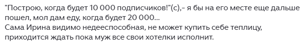 И вот за 10к подписчиков он готов отложить часть дел и поставить, таки, мне еще одну теплицу. Она всё равно будет, просто с выполнением плана по развитию блога - быстрее. Я могу заработать денег и купить теплицу, оплатить установку её. Но зачем? Лучше же всё делать согласованно. Если он сказал, что сейчас это не самое логичное решение, значит так оно и есть. Ну и добавил мне мотивации двигаться дальше, потому что меня какое-то время накрывало уныние от результатов, но оно прошло раньше, еще за долго до цели в 10к ради теплицы.