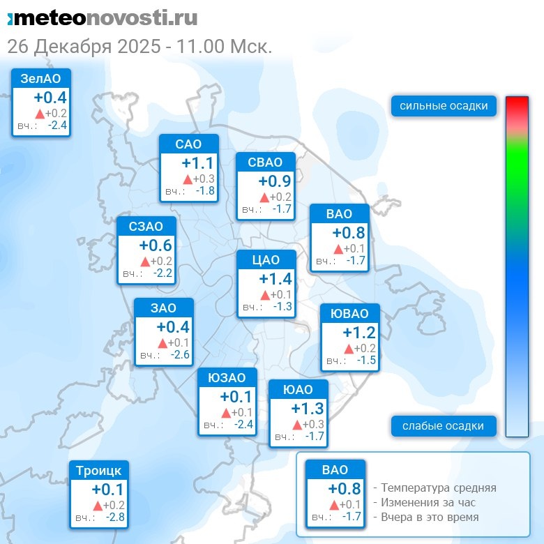 В 11:00 в Москве было от -0.2°C до +1.8°C, средняя температура +0.9°C #погода #Москва #зима #температура #26декабря #пятница