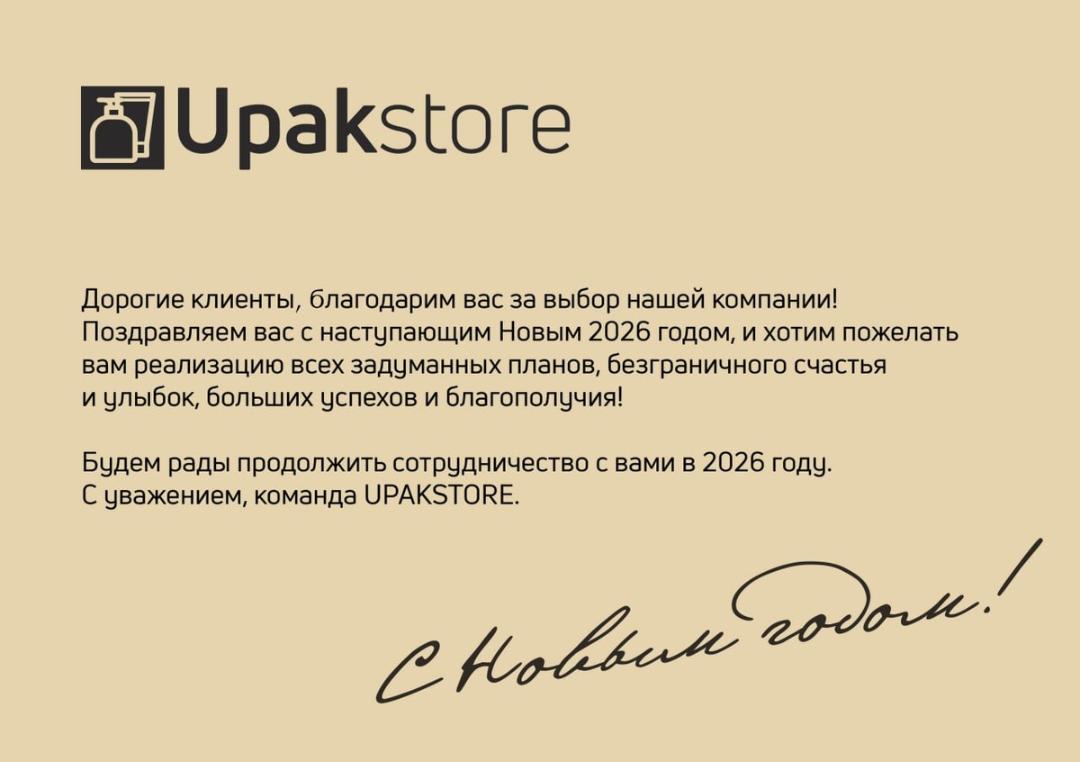 🌟 Режим работы в праздничные дни: 29 декабря до 13:00. С 30 декабря по 11 января — выходные. С 31 декабря по 3 января по техническим работам заказы на сайте не будут приниматься. С уважением и наилучшими пожеланиями, команда UPAKSTORE✨