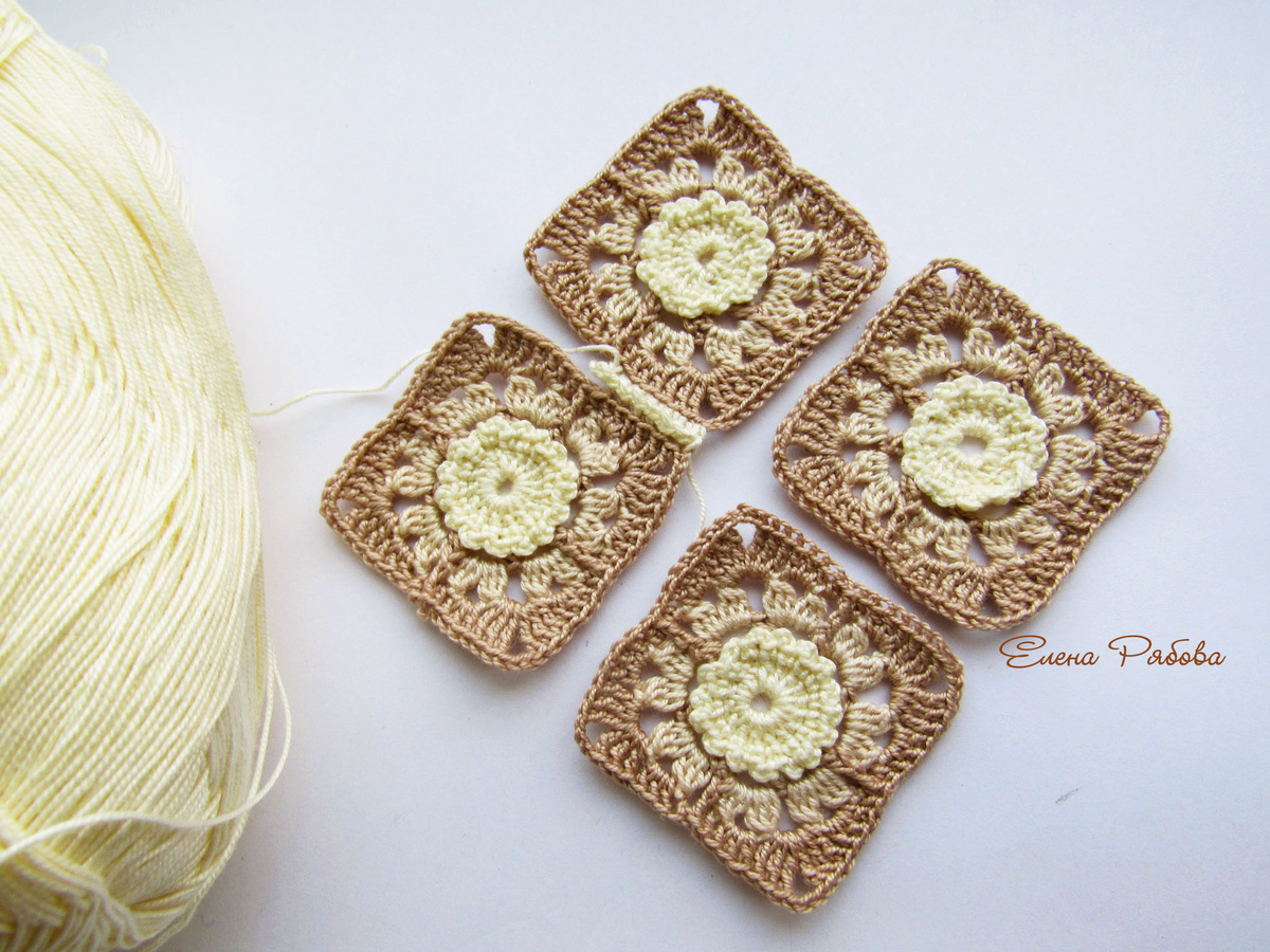 Добрый день, уважаемые подписчики и гости моего канала! В прошлом мастер - классе мы вязали отдельные многоцветные мотивы, посмотреть их описание можно здесь , а сегодня попробуем соединить квадраты между собой. Для соединения будем использовать крючок. Но сначала посмотрим схемы квадратных мотивов, которые нашла в интернете. Из них можно связать чудесные и уютные предметы домашнего интерьера. Главное правило: все квадраты должны иметь одинаковое количество петель по сторонам. Если число петель совпадает, соединить можно и два разных квадрата. Подойдёт для вязания детских пледов и покрывал. Подойдёт для вязания роскошного покрывала или пледа. Трёхцветный цветочный квадрат смотрится очень интересно. Схема крупнее: Мотив с элементом "попкорн" из столбиков с накидом. Сам квадрат ещё обвязан столбиками без накида, на схеме этого нет. Мотив с пышным цветком в серединке и с ажурными сторонами Рельефное соединение столбиками без накида. Складываем мотивы изнаночными сторонами друг к другу, в