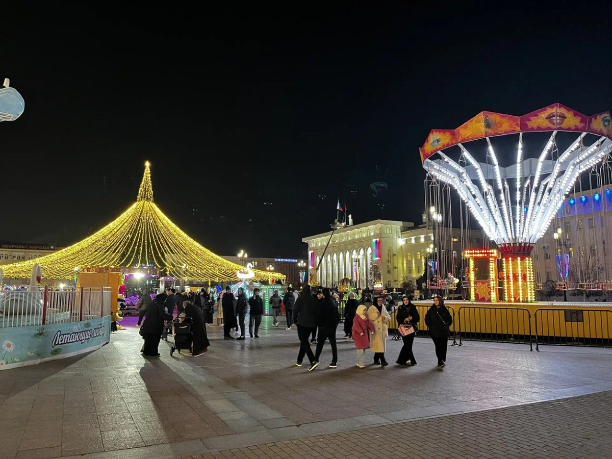 В Махачкале на главной площади зажглись огни ёлки, появились детские аттракционы и каток