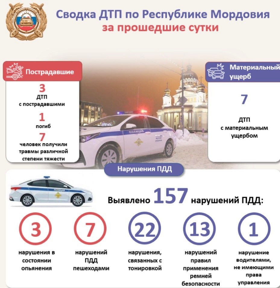 👮♀️ Обстановка с аварийностью на дорогах Мордовии и нарушениями ПДД за 25 декабря 2025 года