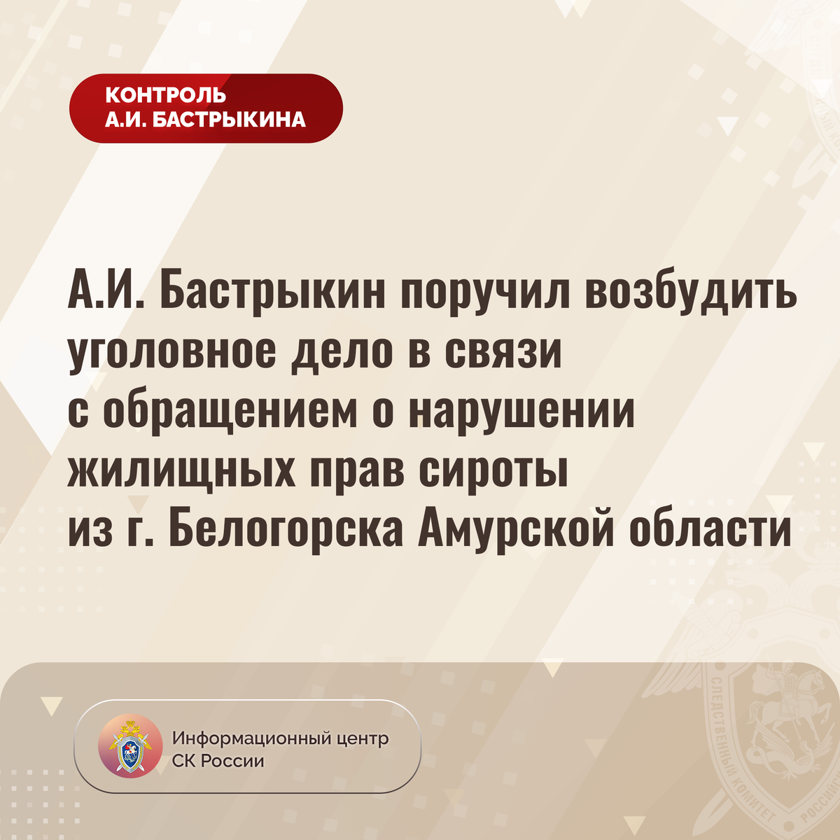 А.И. Бастрыкин поручил возбудить уголовное дело в связи с обращением о нарушении жилищных прав сироты из г. Белогорска Амурской области