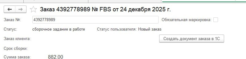 - Кнопка создания документа заказа в 1С на форме заказа FBS